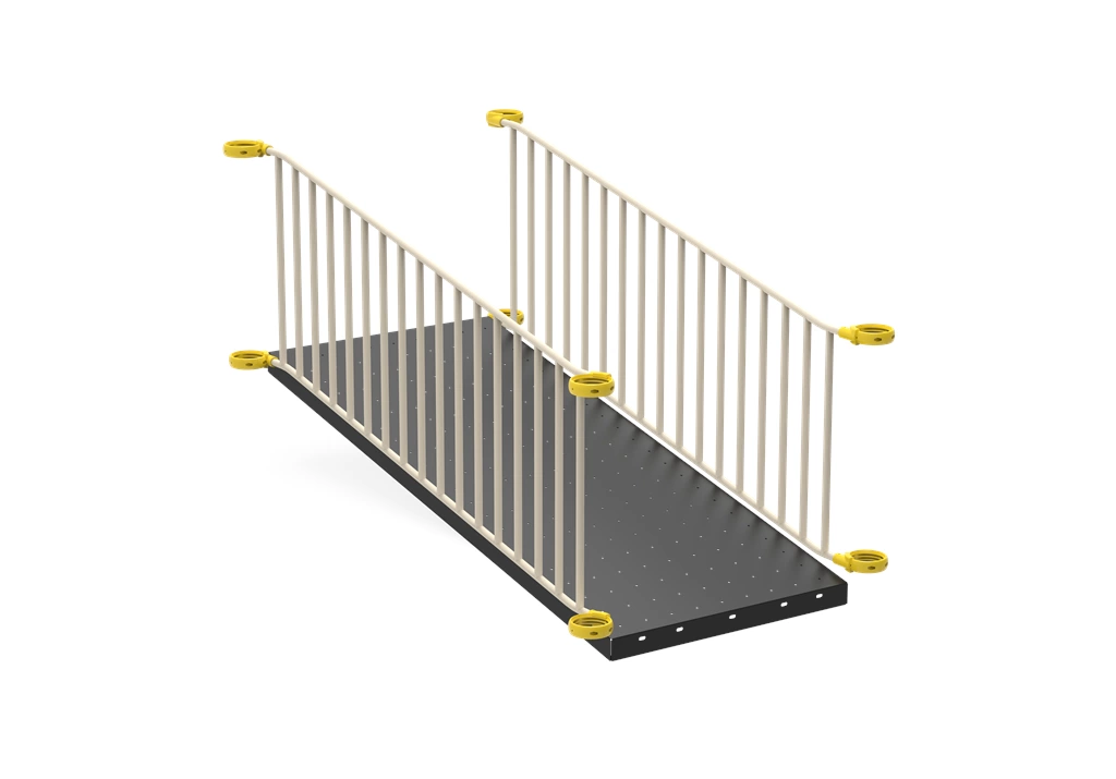 • Merdiven Korkuluğu; Kaydıraklar için bulunan kulelere çıkmak için çeşitli merdivenler kullanılmaktadır. Çocukların bu merdivenlerden düşmemeleri için merdiven korkulukları üretilmektedir. Merdiven korkulukları; kuleden kuleye ara merdiven korkuluğu, yerden kuleye merdiven korkuluğu ve iç merdiven korkuluğudur. Çocukların kuleden, kuleye geçmesini güvenli hale getiren merdiven korkulukları oldukça önemlidir.